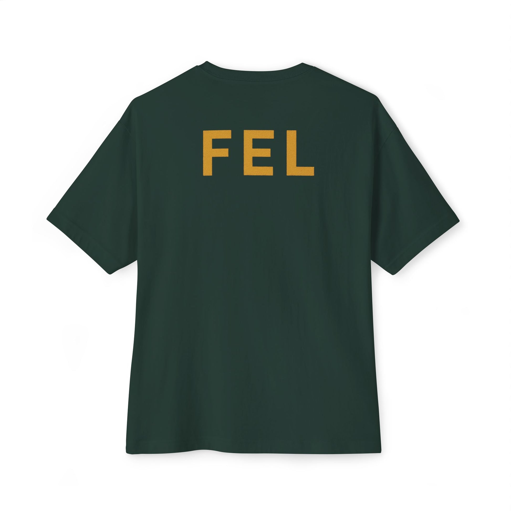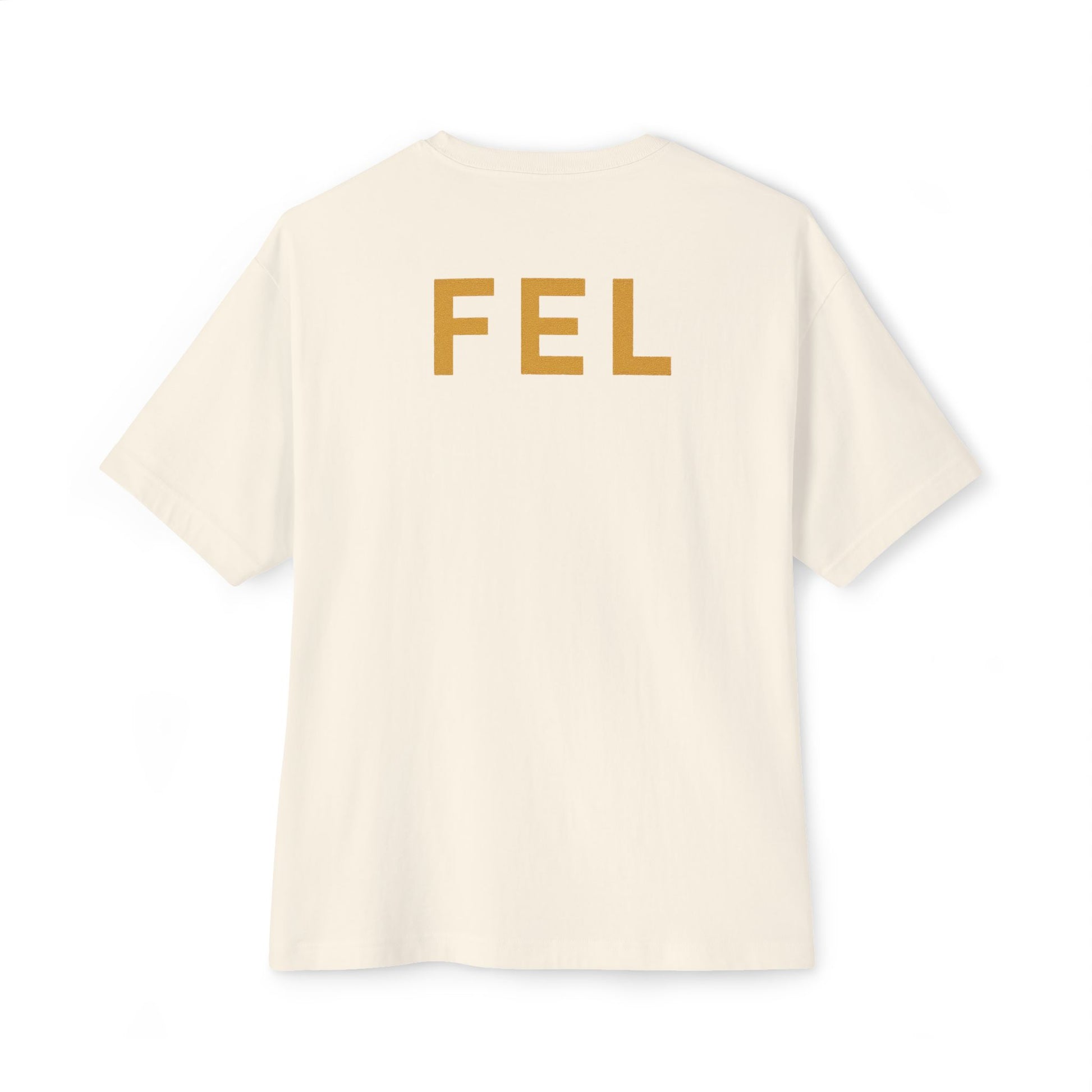 A vibe you can wear. This boxy oversized tee features a vintage poster-style panther—majestic, mid-cig, effortlessly cool. The artwork is printed in warm, faded gold tones on the back, with minimalist FEL branding on the chest. Timeless, mysterious, and bold without trying.